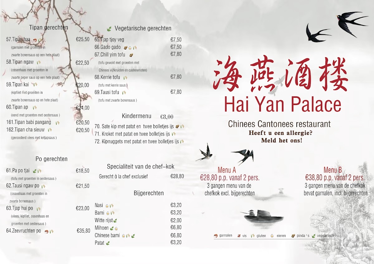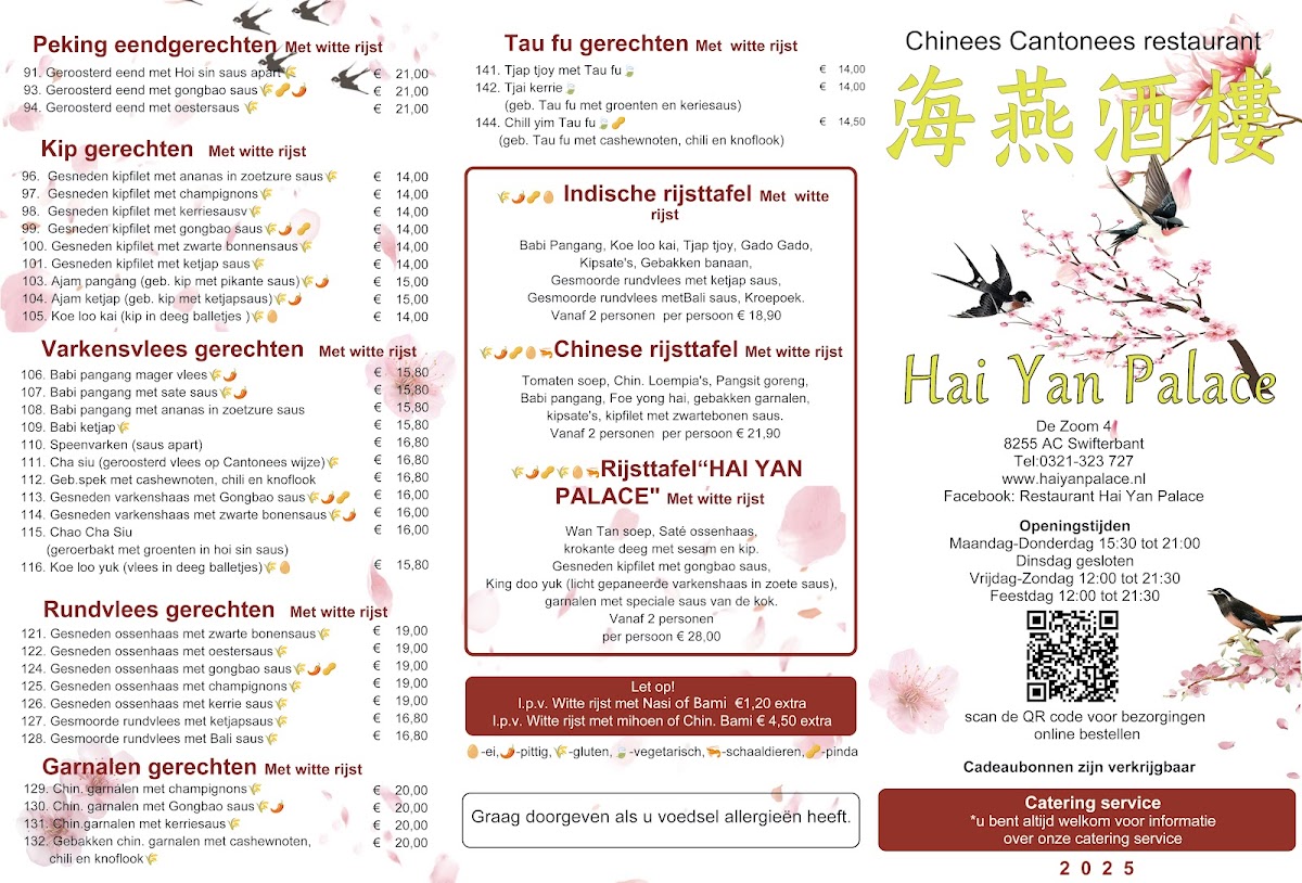 Welcome to Hai Yan Palace, a hidden gem nestled in Swifterbant, Netherlands. Located at De Zoom 4, this charming eatery offers an authentic taste of Chinese cuisine that stands out even in a small locality. Patrons rave about the swift delivery and the freshness of the dishes. One highlight is the restaurant's flexible chef, renowned for accommodating specific requests and crafting traditional meals that resonate with authentic flavors.